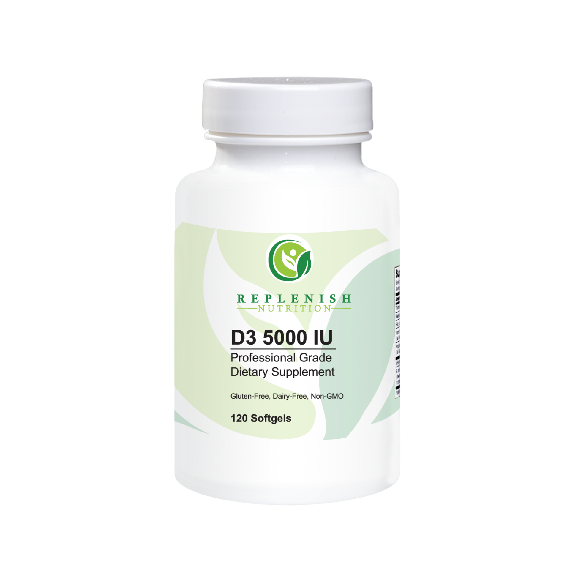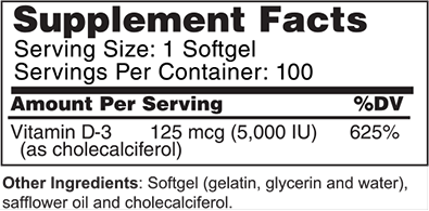 D3 5000 IU is a highly bioavailable form of vitamin D3 (cholecalciferol) providing 5,000 IU per softgel.