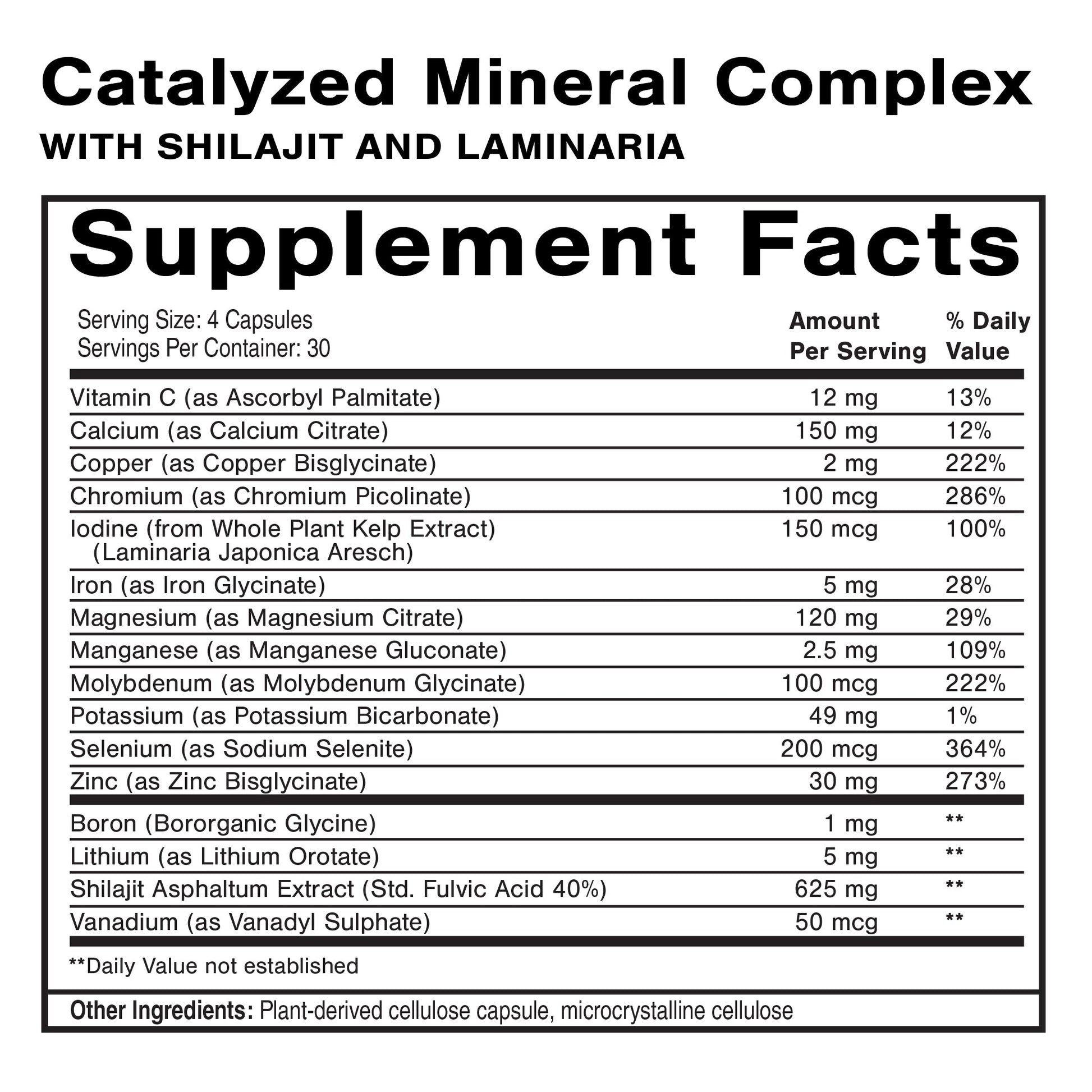 Unique to this foundational mineral complex is the organic Himalayan resin Shilajit, rich in fulvic acid to help transport minerals to cells, and Laminaria, a brown seaweed rich in iodine and other bioactive compounds aiding metabolic optimization.